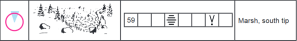 (Think this is a new one.) Variation on the rough open land (shown here) and open land (yellow background) with trees – now shows green spots for bushes/thickets and white spots for trees.
