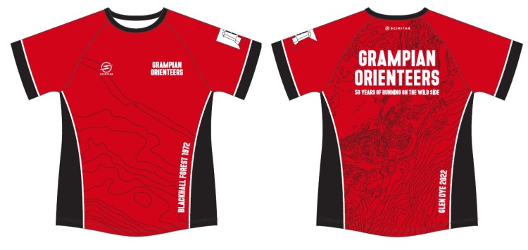 Thanks to Ros we have the chance to refresh our orienteering wardrobes with some great new-look kit featuring two lots of contours, taken from Robin Sloan’s original 1972 Blackhall map and the updated 2022 Glen Dye map, plus a new take on our strapline: