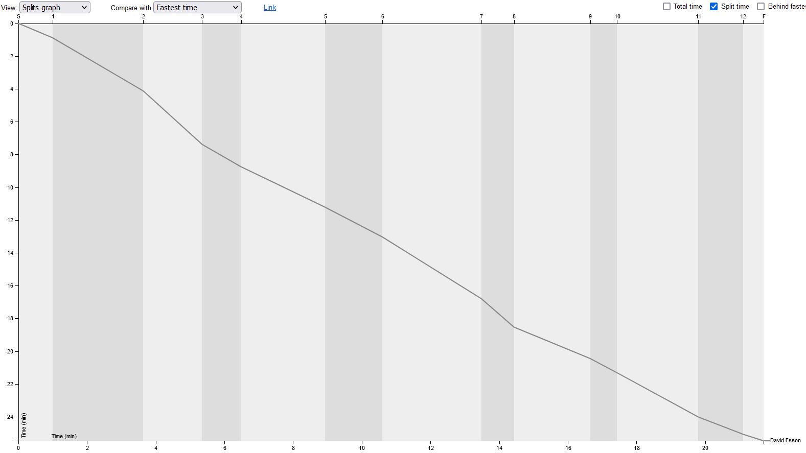 Proof that we always have a First Aid box as part of the organiser’s kit and folk trained to use it although I think we may need to draft in specialist psychiatric help as David looks oddly very happy about it all. Maybe it’s because despite all that his RG splits trace is still a remarkably consistent gradient:
