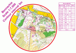 The circular maps were a novel training exercise for more experienced orienteers.  The maps had no magnetic north lines, and no indication of which way is north!  Ideally you should do the courses without using a compass, by simply reading the map, identifying the features, using good attack points, and staying in close map contact.  If you have any thoughts on this format, maybe you could let us know, or add a comment to this post.
