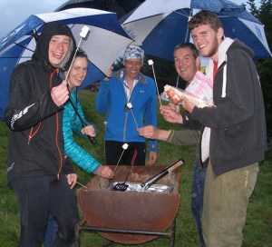 Hoist by his own fiendish petard again, it will take David a wee while to figure out the points for the Technical Score course so in the meantime here’s a space filling photo of some diehards who just couldn’t bring themselves to  abandon the BBQ when there’s important unfinished mallowy business to be toasted.
